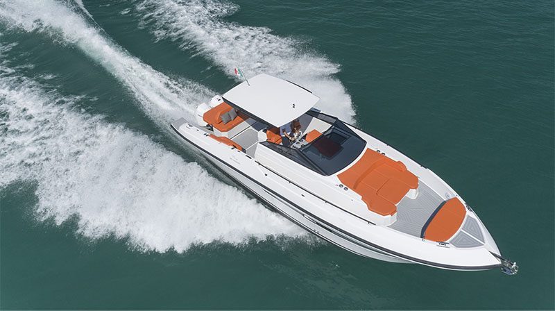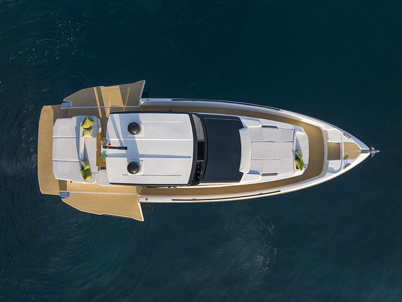 Con 13 metros de eslora, puede llevar motores fueraborda o intraborda, ambos ofreciendo un rendimiento excepcional.